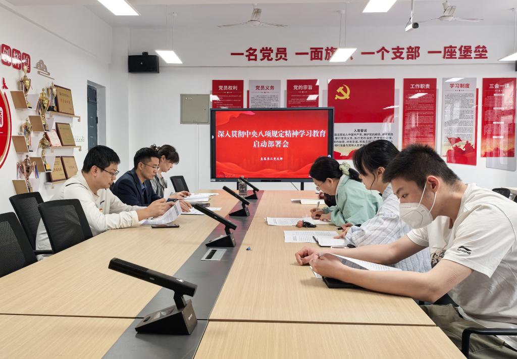 3月26日下午,直属第二党支部在党员之家召开贯彻中央八项规定精神学习教育启动会,学习传达中央党的建设工作领导小组会议精神和《中共中央办公厅关于在全党开展深入贯彻中央八项规定精神学习教育的通知》精神,结合学校下发的《关于在全体党员中开展深入贯彻中央八项规定精神学习教育的实施方案》,对开展深入贯彻中央八项规定精神学习教育进行部署。支部书记袁荷伟主持会议并做动员讲话,支部全体党员参加会议。